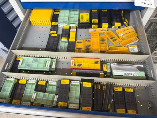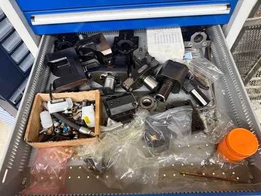 Inhalt bestehend aus diversen Drehstählen, Ausdrehwerkzeug verschiedener Hersteller, Wendeschneidplatten in verschiedenen Ausführungen, diversen MAZAK VDI 40 Werkzeugaufnahmen, Spannmitteln