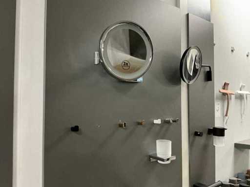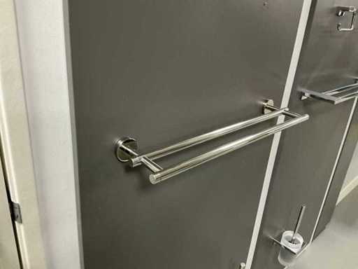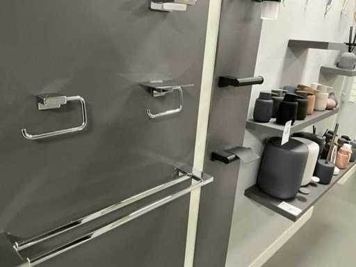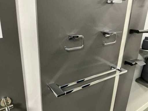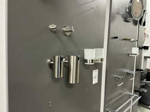 Verschiedene Arten und Größen von Duschzubehör auf Wandplatten.