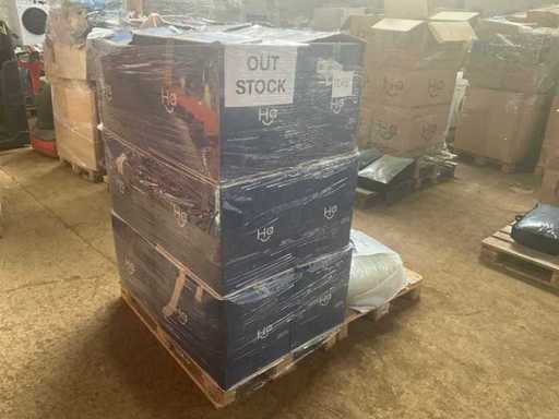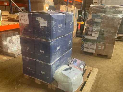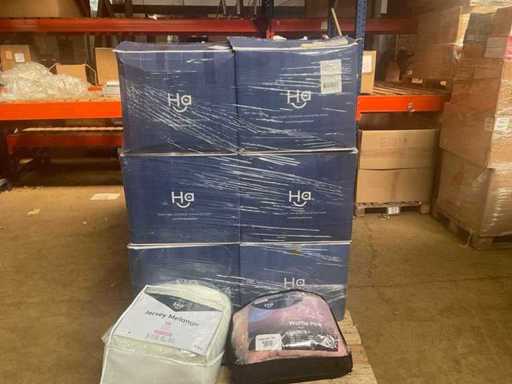 Die Palette enthält eine Mischung aus Happybed-Artikeln. Die Palette kann folgende Artikel enthalten; Ärmellose Bettdecken, Kissen, Kissenbezüge, Spannbettlaken und Auflagen.