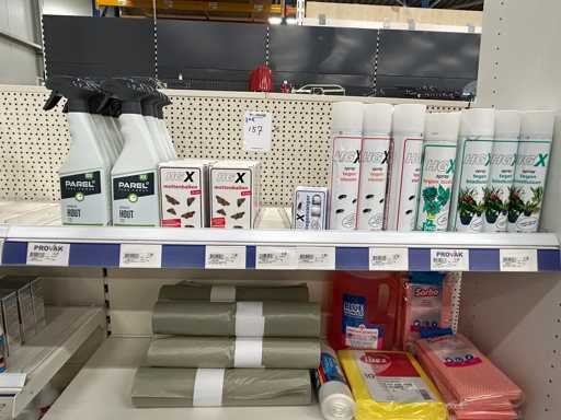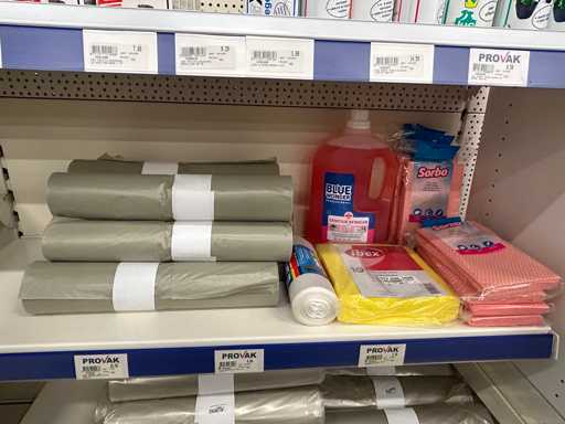 Ungefähr 70 Artikel, darunter HG, Reinigungsmittel und Müllsäcke