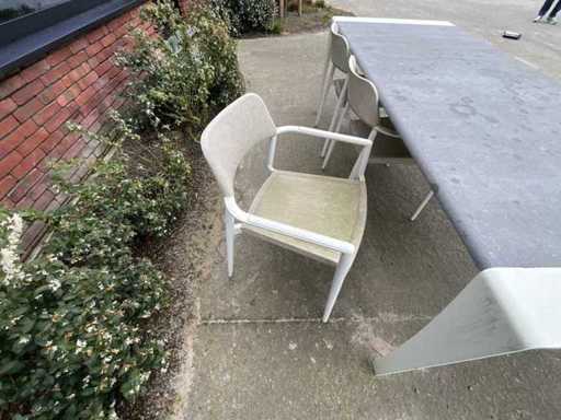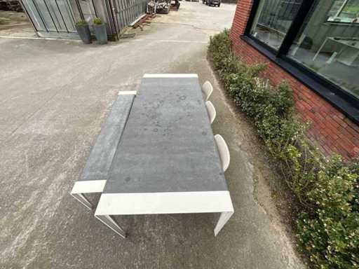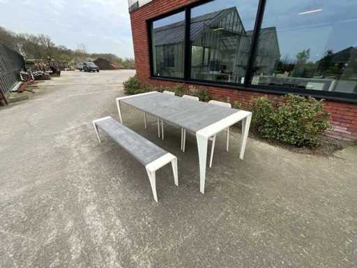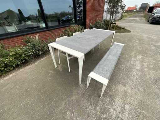 Tisch + Bank + 3 Stühle
