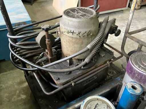 Bestehend aus: verschiedenen Größen von Schneckenzylindern, 3x Handhydraulikpumpe, hydraulischer Antriebseinheit auf dem Wagen