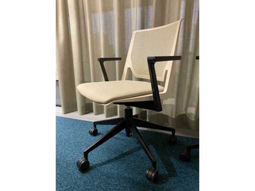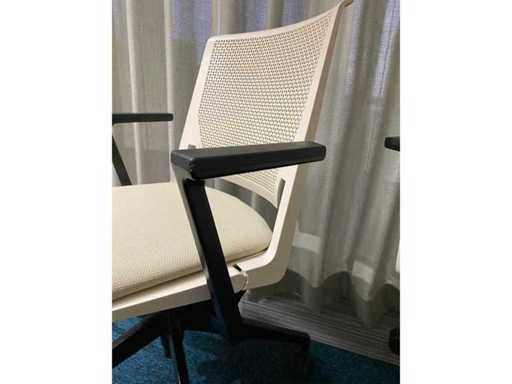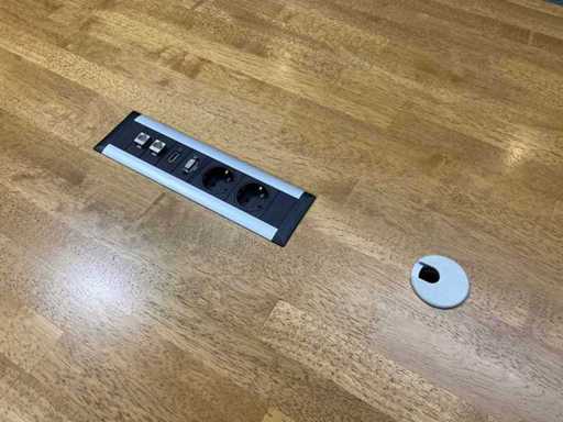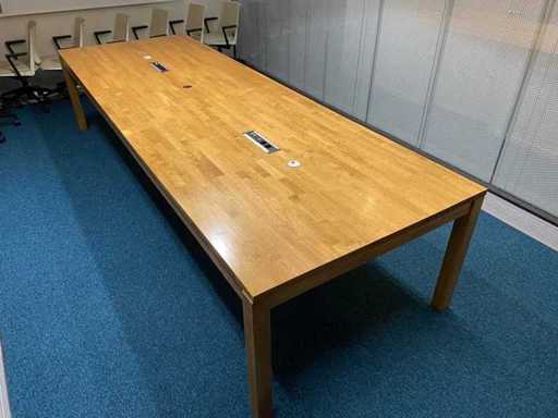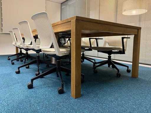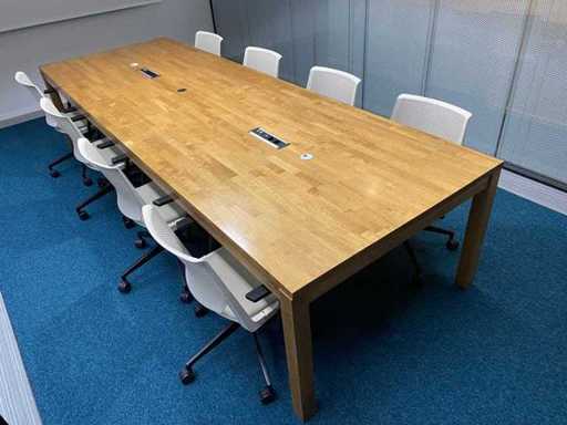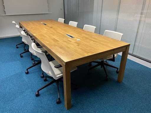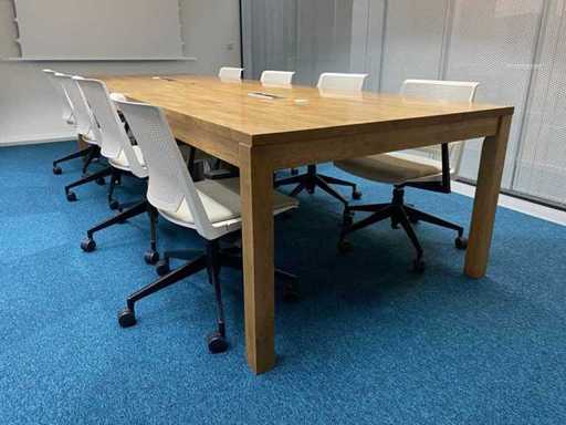 Das Grundstück besteht aus 8x Haworth Mobile Conference Chair --- 1x rustikalem Holzkonferenztisch mit eingebautem Modul und Kabelzugang. Der Tisch wurde bereits professionell auseinandergebaut (oben in zwei Teilen).