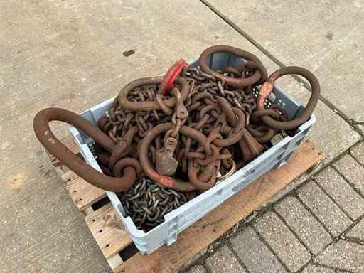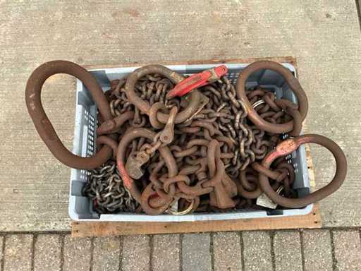 Bestehend aus einer Plastikkiste mit verschiedenen Hebeketten
