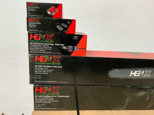 1 Batterie 2,5AH; 1x Kettensäge; 1x 2in1 Bruschcutter; 40V-Batterie-Gürtel;