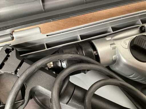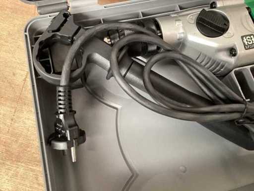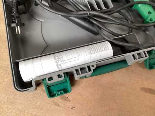 Schlagbohrer im Kunststoffgehäuse, verschiedene Zubehörteile