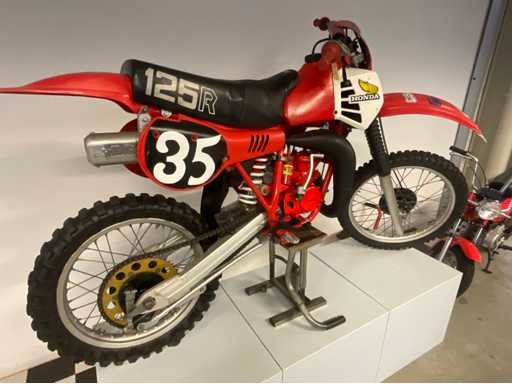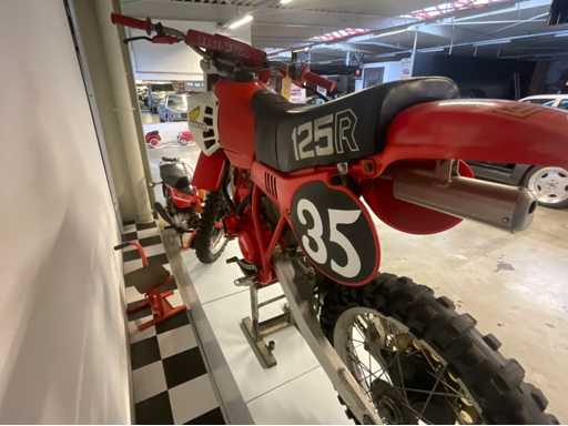 Honda CR 125 R Motocross-Motorrad, Vintage-Modell aus den 1980er Jahren, präsentiert in einer Wettbewerbskonfiguration mit Kennzeichen 35.