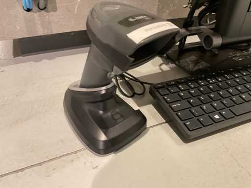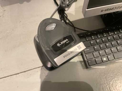 Enthält Tastatur, Computermaus, Verifone-Geldautomat mit Kundendisplay und Zebra-Barcode-Scanner, Modell DS22.