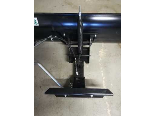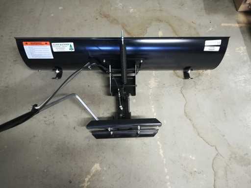 Robustes Stahlräumschild mit schützendem Federmechanismus. Arbeitsbreite 122 cm. Lässt sich nach rechts und links abwinkeln. Austauschbare Schürfleiste.