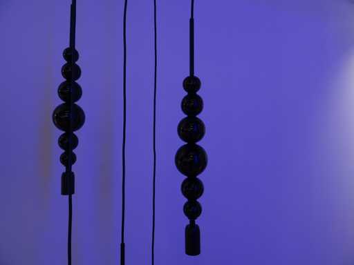 Farbe: Weiße Deckenplatte, mattschwarze, schwarze Glaskugeln; Anzahl der Lichtquellen: 5