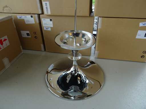 Farbe: Chrom; Anzahl der Lichtquellen: 3; mit Kristallelement Halogen; Maße: 85x50 cm (HxDia)