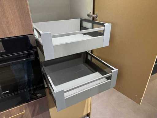 Einschließlich der Wärmeschublade Juno; Abmessungen, Schrankwand etwa 246,6x65x236,3; bereits zerlegt und auf Paletten gepackt. (Stapeln, Austausch oder Ablagerung pro Palette); Paletten sind nicht enthalten; Zahle eine Anzahlung beim Abholen oder stapele Paletten; Arbeitsplatte nicht auf Paletten gepackt (26-IMP-04235)