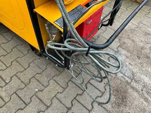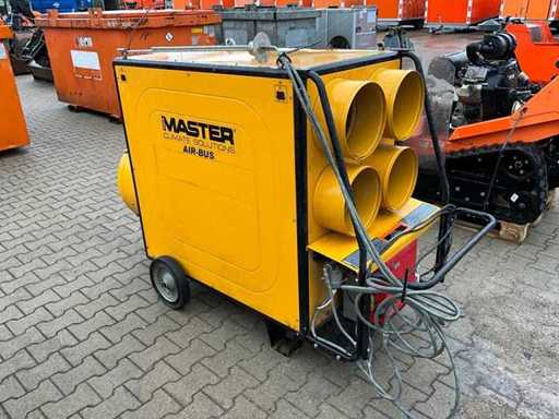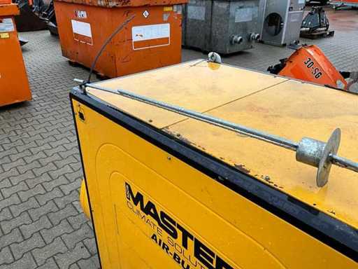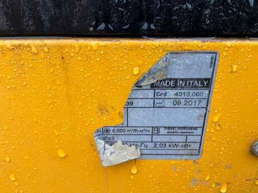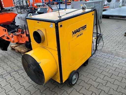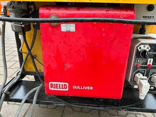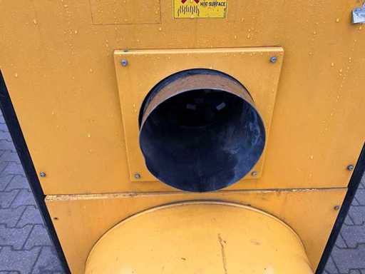 mobil; Dieselbefeuert; Wegwerf-Riello; Volumendurchfluss 8000 m³/stunde; 230 Volt; 8,8 Ampere; 2 kW; 4-facher Luftauslassdurchmesser. 270 mm; Abgasauslass; Treibstoffleitung; Betriebszustand