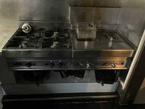 - 4-Brenner-Gasherd und Doppelfritteuse
