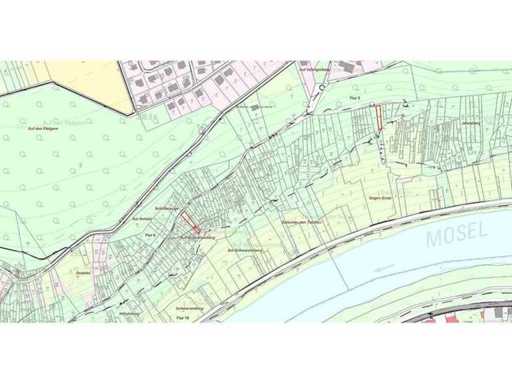Mit einer Gesamtfläche von 604 m² bieten das Grundstück und seine Umgebung die Möglichkeit, die Ruhe und die schöne Berglandschaft zu genießen. Diese Parzellen, die über Weinbergen und nahe der Alt-Bergweg-Straße liegen, liegen mitten in den unberührten Hügeln von Valwig. Es befindet sich in einem bewaldeten Gebiet und befindet sich als geschützter Standort im Landschaftsgebiet 'Cochemer Krampen'.