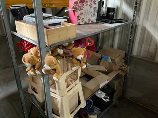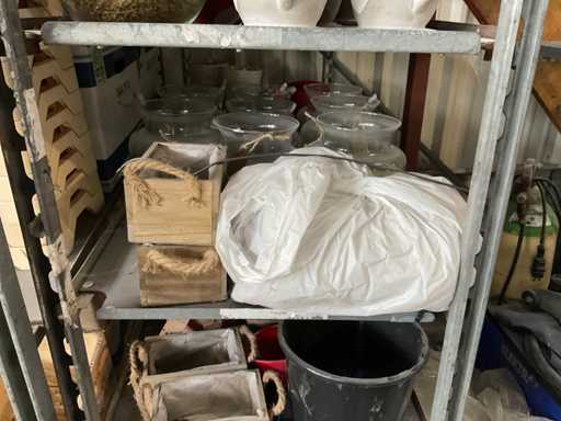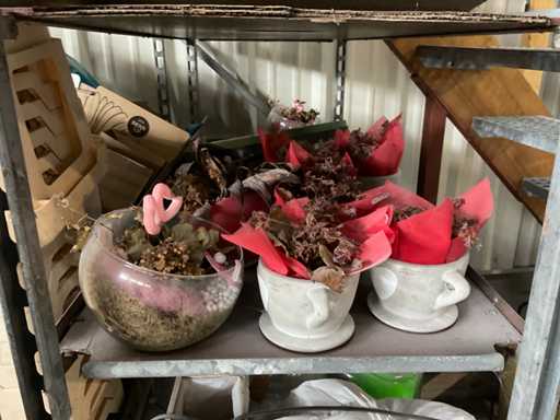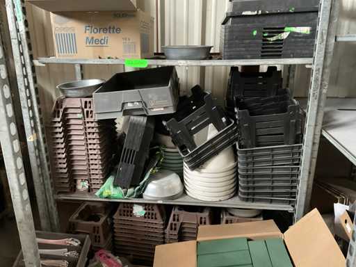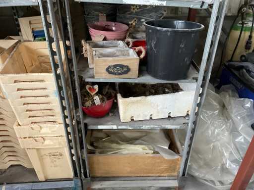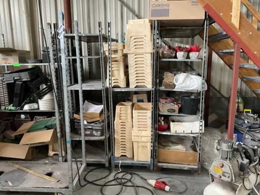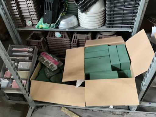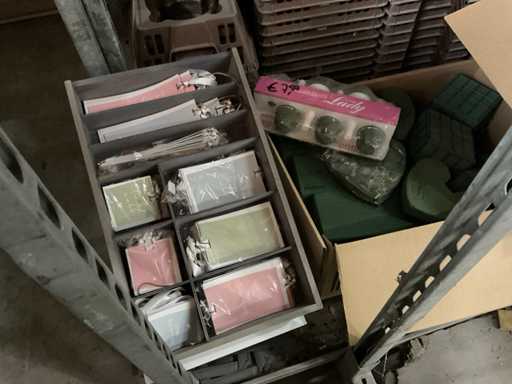 7 Gestelle mit allerlei Dekorationsmaterial; Büroinventar; aus dem Blumenladen
