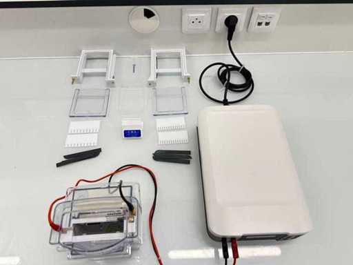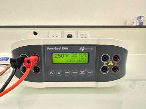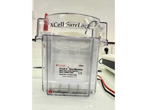 Ein Life Technologies PowerEase 300W Elektrophorese-Generator ist an eine Invitrogen XCell II Blot Module Transferkammer angeschlossen