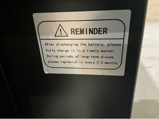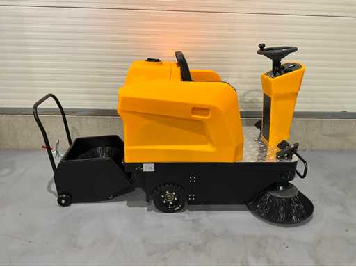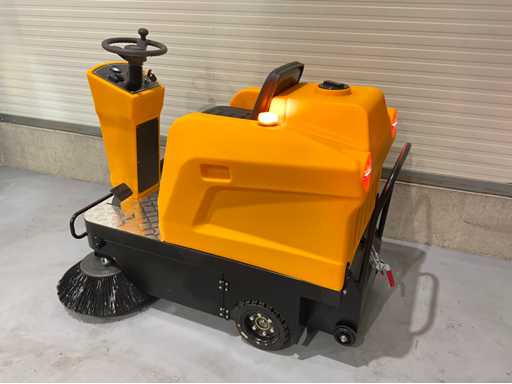 Unbenutzt: Vordere LED-Lichter, Rückfahrleuchten, einschließlich 2 Ersatzbürsten, Staubschutzsystem, kettengetrieben, blinkende Lichter, Arbeitszeiten 4/5 Stunden, 48V / 65 Ah-Batterie, Sammelbehälter 80 Liter, Bürstenmotor 700W, 0-10 km/h,