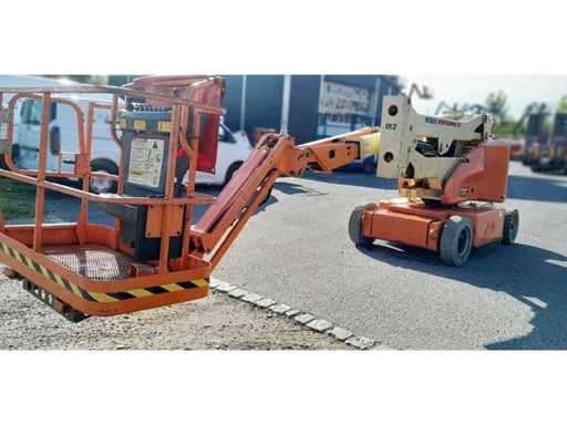 Interne Nummer 69421, Plattformhöhe 12,90 m, Drehbarer Arbeitskorb, Korbarm, Vollgummi-Reifen, weiße Reifen, Hinweis: Funktion in Ordnung, Batterie defekt, Kran Verladung erforderlich, Kosten auf Anfrage. Für die Abholung ist zwingend ein Tieflader mit eigenen Rampen nötig!