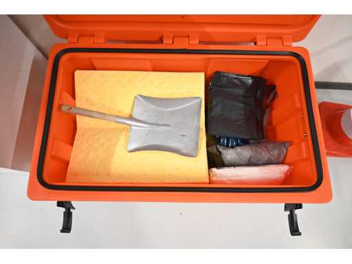 Inhalt besteht aus Sicherheitspylonen, Schildern zur Verhinderung von Rutschigkeit usw.