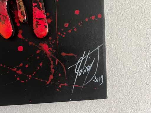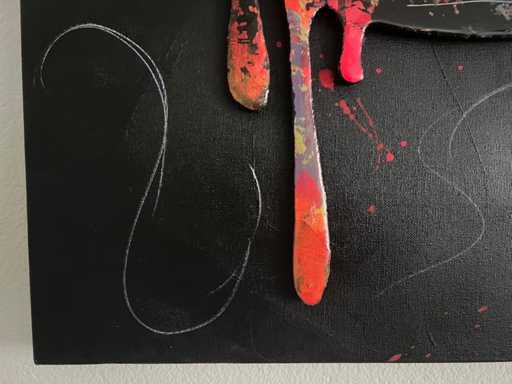 Technik: Farbe, Acryl / Sprühdose / Holz / Harz auf Leinwand