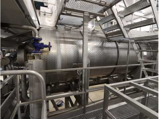 Dampfbeheizt, ausgestattet mit Edelstahl-Drehgürtel, Ausführungsriemen aus Edelstahl, Größe 2900x500 mm, einschließlich Fahrgestell, ohne Plattform und Treppen