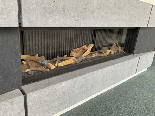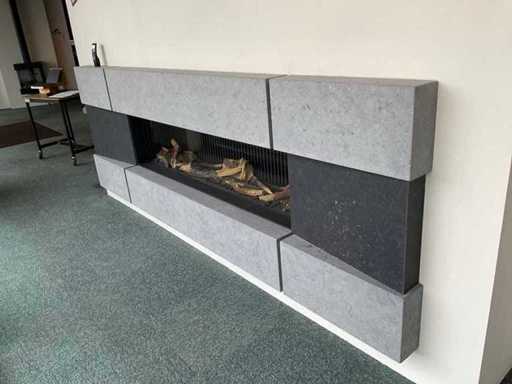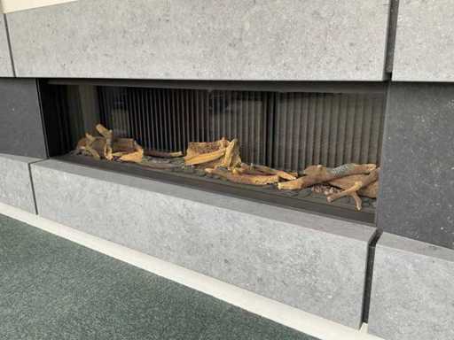 Kaminvisierbreite 1625 mm, Höhe 45 mm; mit Logset; Fernbedienung; Belgischer Bluestone-Umbau schwach. 2885x985x120 mm; HINWEIS: Kamin wird vom Käufer selbst vor Ort abgebaut; Wände bereits abgebaut.