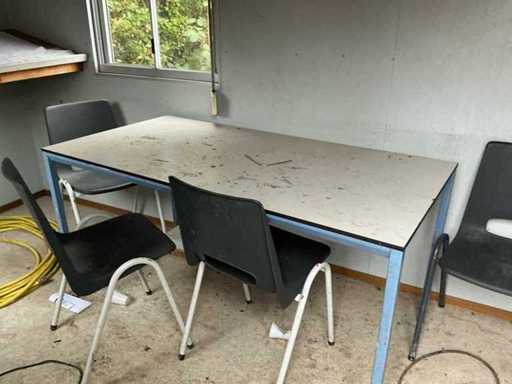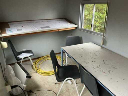 Ausgestattet mit: Arbeitstisch, Esstisch, Tür, Beleuchtung mit Schaltern, Steckdosen, Fensterläden