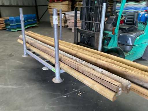 Kiefernimprägnierte, runder Pfosten 300–500x10x10 cm. 5 Teile 300x10x10cm, 8 Teile 500x10x10cm.