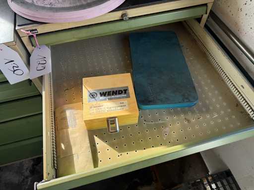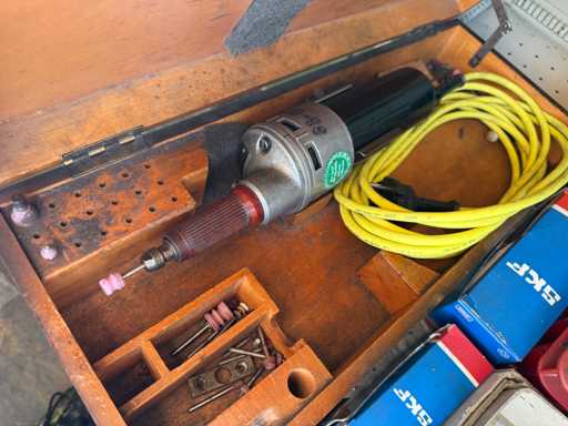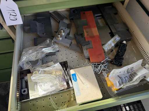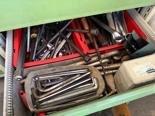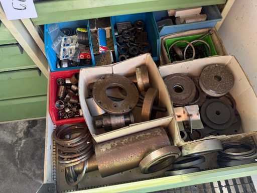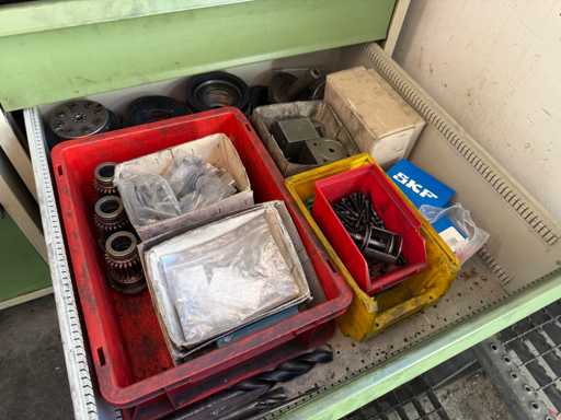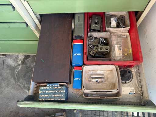 Inhalt bestehend aus Diamantabrichtroller, Spiralbohrern, Schrauben und weiterem Handwerkzeug