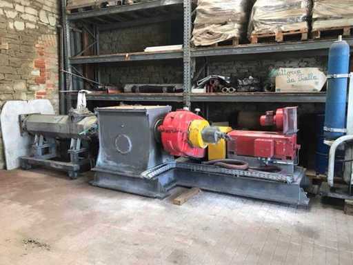 Der Kneter wurde zum compountiern von Polymerlegierungen genutzt. Leistungsdaten siehe Bilder. Der Kneter wurde aus einer Gesamtanlage ausgebaut. Sodass die Elektrischen Teile nur zum Teil in Schaltschränken vorhanden sind. Viele weiter elektrische Steuerteile werden inklusive der Schaltschränke in Losnummer 17 separat angeboten. Für Vollständigkeit gibt es keine Garantie. Umfangreiche Dokumentation vorhanden. Des weiteren sind weitere Losnummern eventuell interessant zum Beispiel die Losnummern 13, 20, 21. Die Anlage war bis zum Letzten Tag vor dem Ausbau in Betrieb. Es ist eine Große Anzahl von Schneckenelementen und Zylinderschalen vorhanden. Es werden für die Anlage komplett Minimum 15% des Neupreises erwartet.