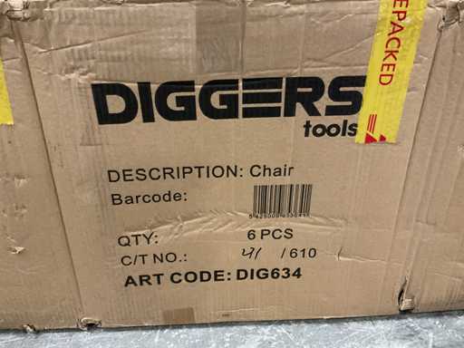 Diggers Klappstuhl – Schwarz – Gepolsterter Sitz und Rückenlehne 6x