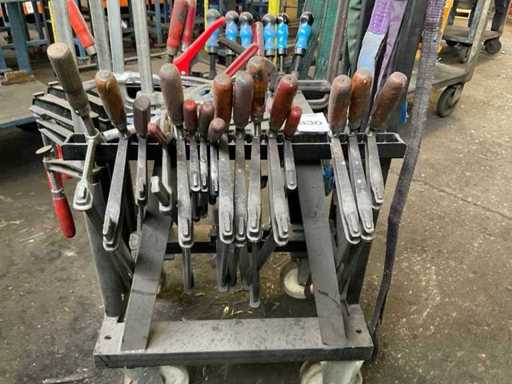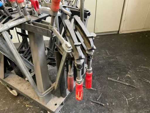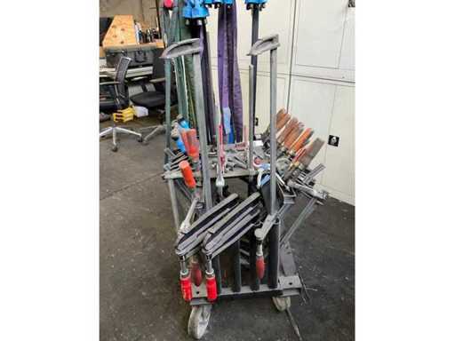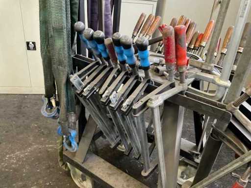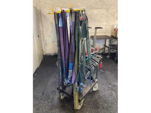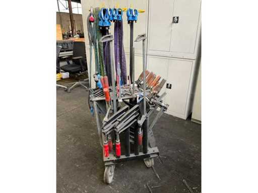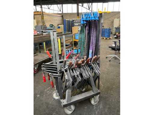 Bestehend aus einem mobilen Stahlwagen mit verschiedenen Größen von Klebeklemmen, Hebeaugen und Heberiemen