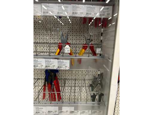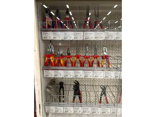 Bestehend aus dem Inhalt des Schranks, darunter Kombinationszangen, Schneidzange, Telefonzange, Kabelschneider, Wasserpumpenzangen, Blechscheren usw