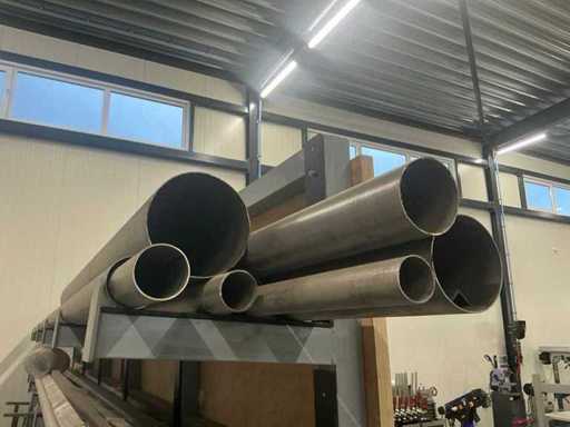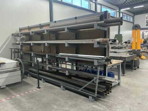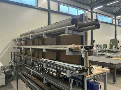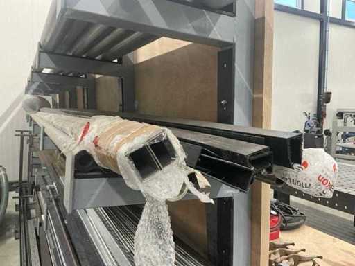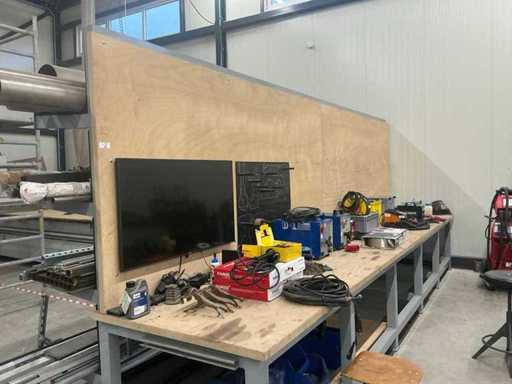 Mit Ausnahme von nummerierten Losen. Ausgestattet mit einer Holzarbeitsplatte (4 cm), Iiyama-Monitor mit Mini-PC und Tastatur. Hinten ist er mit einem 6-teiligen Auslegerträger mit Stahl, Aluminium und Edelstahl ausgestattet. Die Werkbank ist in einem Stück verschweißt und muss entsprechend transportiert werden.