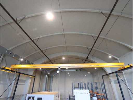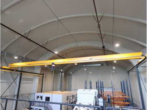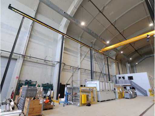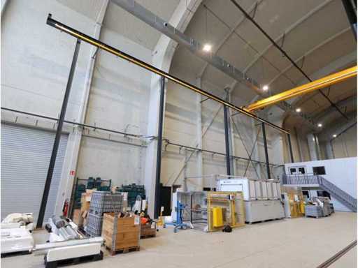 Mit elektrischem Kettenheber, ferngesteuert, 10 Stahlsäulen, Höhe ca. 9,500 mm, Laufbalkenlänge ca. 27,500 mm und Antriebsschiene