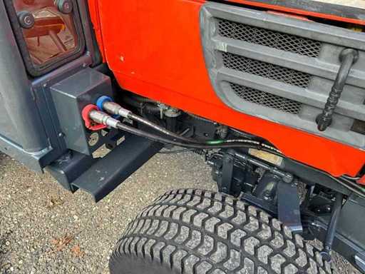Allradantrieb, 3-Zylinder-Kubota-Motor, hydrostatischer Antrieb Hoch/Tief, Turf-Reifen, 3-Punkt-Frontgelenk, vordere PTO, 3-Punkt-Heckgelenk inklusive oberer Verbindung, zusätzliches Hydraulikventil hinten, PTO