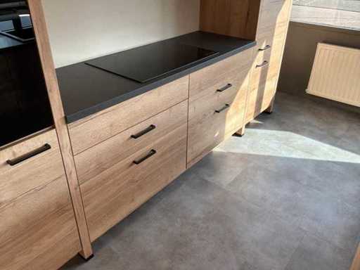 Beinhaltet einen Bosch-Induktionshof mit 4 Kochplatten, zwei Barhocker und Inhalt.