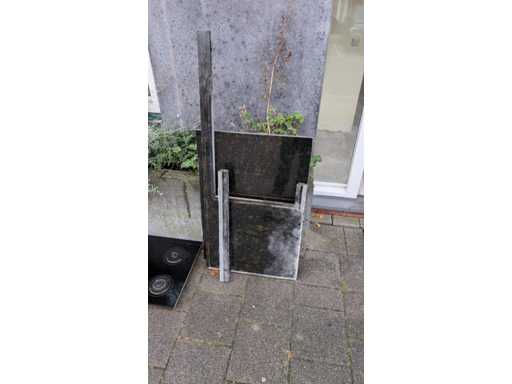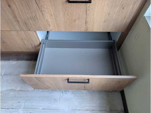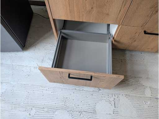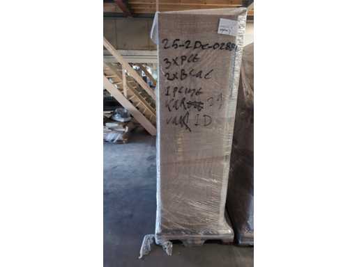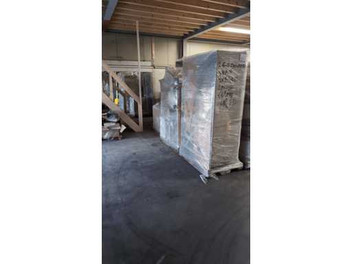 Verwendeter Zustand; Klinge beschädigt; Maße LxW ca. 302x60 cm; Hochschränke lxwxx ca. 125x60x200 cm; Schon zerlegt und auf Paletten gepackt. (Stapeln, Austausch oder Ablagerung pro Palette); Paletten sind nicht enthalten; Zahle eine Anzahlung beim Abholen oder stapele Paletten; Arbeitsplatte nicht auf Paletten gepackt