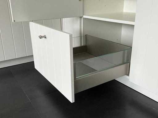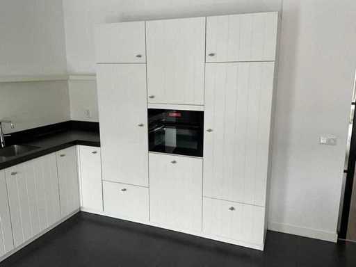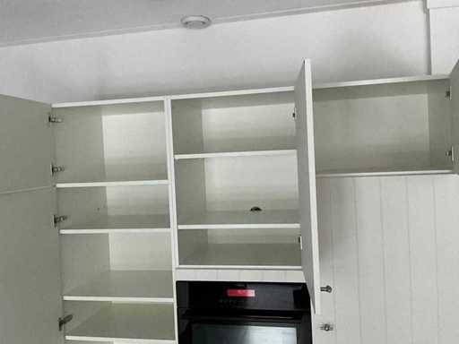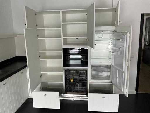 Verwendeter Zustand; verpackt auf 4 Paletten; Abmessungen links Teil LXW ca. 250x60 cm; Maße rechts LXW ca. 200x60 cm; Schon zerlegt und auf Paletten gepackt. (Stapeln, Austausch oder Ablagerung pro Palette); Paletten sind nicht enthalten; Zahle eine Anzahlung beim Abholen oder stapele Paletten; Arbeitsplatte nicht auf Paletten gepackt Bitte beachten Sie; Der Motor der Haubenhaube klemmt und die Innenseite der Tür des Kühlschrankbodens zum Einfüllen der Flaschen ist abgebrochen.