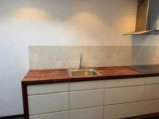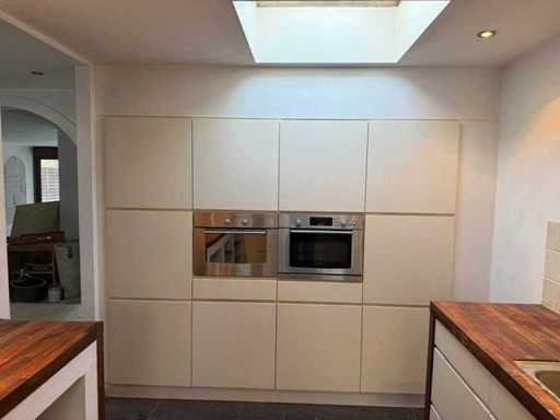 Verwendeter Zustand; Verpackt auf 3 Paletten; Abmessungen links Teil lxw ca. 373x60 cm; Abmessungen rechts LXW ca. 219x60 cm; Maße Hochschränke LxWxH ca. 240x60x202 cm; Schon zerlegt und auf Paletten gepackt. (Stapeln, Austausch oder Ablagerung pro Palette); Paletten sind nicht enthalten; Zahle eine Anzahlung beim Abholen oder stapele Paletten; Arbeitsplatte nicht auf Paletten gepackt