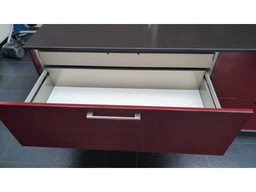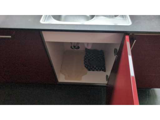 Verwendeter Zustand; Maße Teil mit Becken LXW ca. 248x120 cm; Maße Hochschränke LxWxH ca. 241x60x232 cm; bereits demontiert und auf Paletten verpackt (stapeln, austauschen oder ablegen pro Palette); Paletten sind nicht enthalten; Zahle eine Anzahlung beim Abholen oder stapele Paletten; Arbeitsplatte nicht auf Paletten gepackt