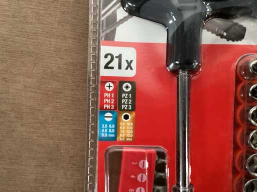 21-teiliges Bohr- und Steckschlüssel-Set mit Griff