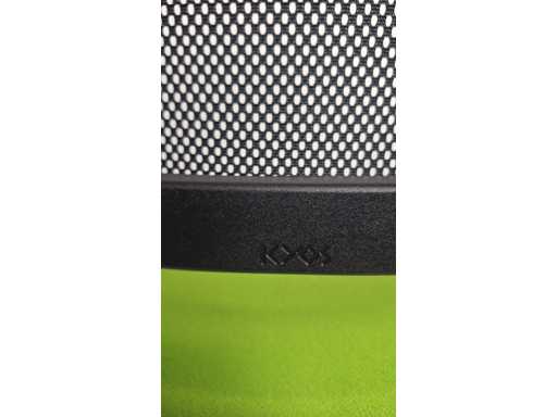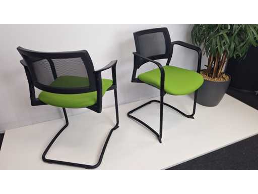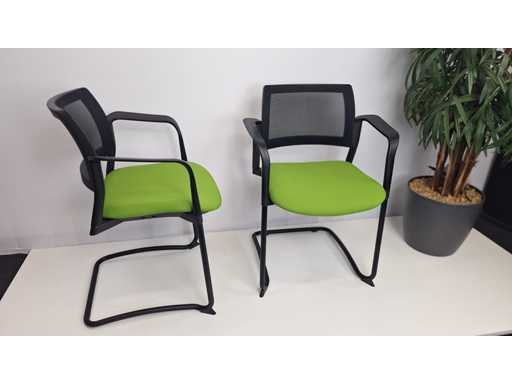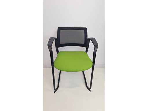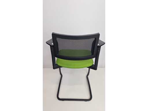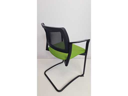 Schlittenbasis in Metallfarbe Schwarz, Sitzpolster in Stofffarbe Grün, Rückenlehne in Netzgewebe Schwarz, Armlehnen in Kunststoff Schwarz, wie neu