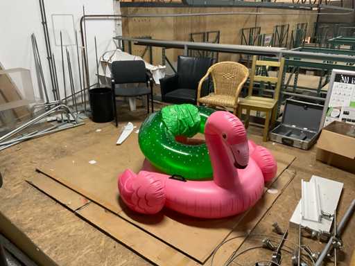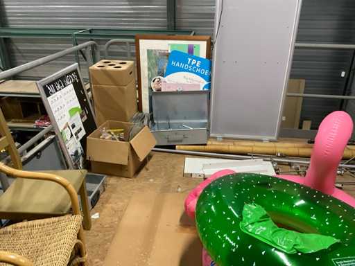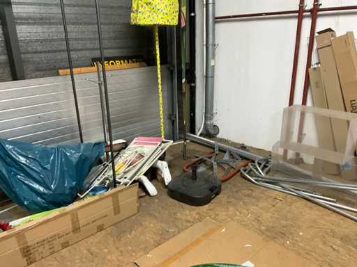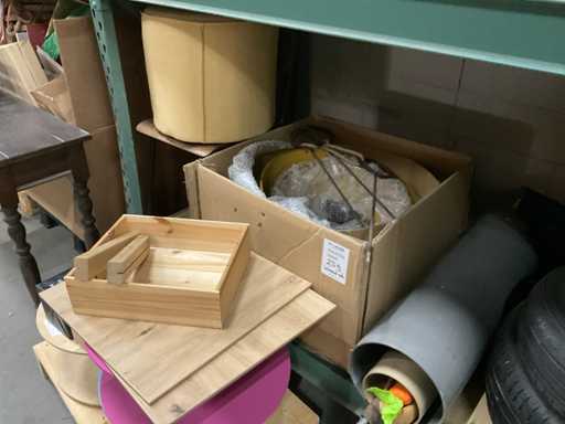 Bestehend aus Inhalt 3 Gerüstnamen und Dachboden, bestehend aus Holzklötzen, Weihnachtsdekoration, Beistelltisch, Dekorationskästen, Stühle und Hocker etc.