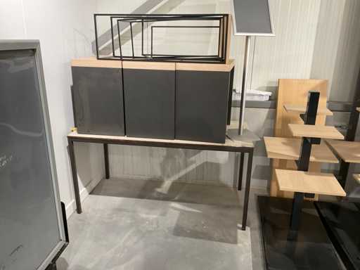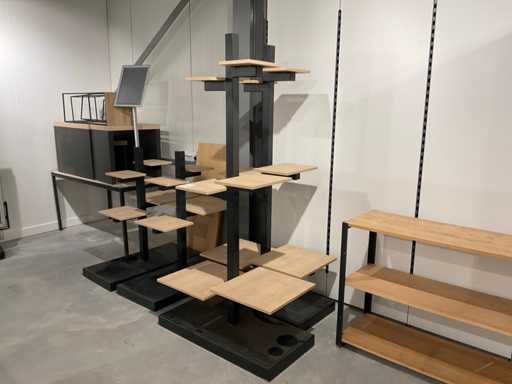 Verschiedene Ladendisplays in verschiedenen Ausführungen, inklusive Tisch.