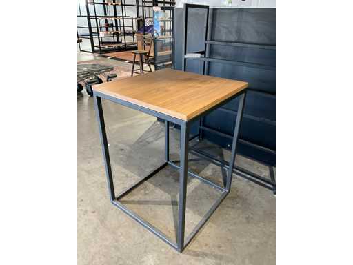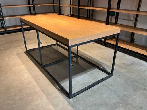 Ausgestattet mit 5 Holzregalen, komplett mit einem Metalltisch mit Holztisch, ca. Größe 220x100x96 cm, leeres Gestell mit 3 Ebenen mit den Maßen: 120x40x164 cm und einem Metall-Stehtisch mit Holzdecke, Maße: 80x80x110 cm, der Rahmen des Regals ist verschweißt