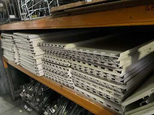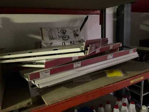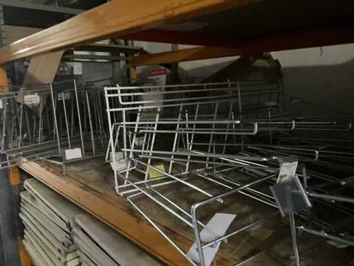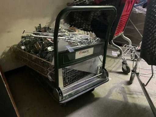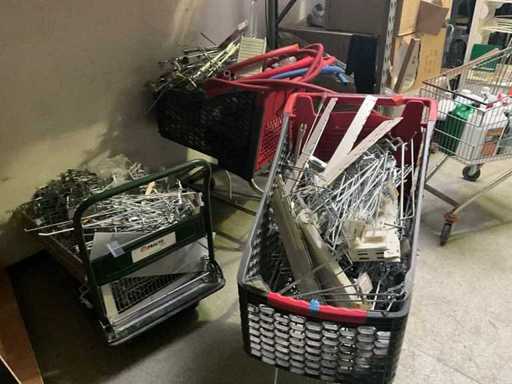 Bestehend aus 5 verschiedenen Ladenregalen + ca. 100 cm Regalen für Ladenregale, verschiedenen Haken für Ladenregale, 9 verschiedenen Körben und 2 Einkaufswagen. Der Practo-Transportwagen ist nicht enthalten.