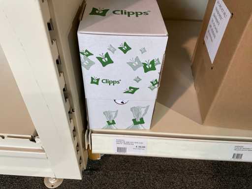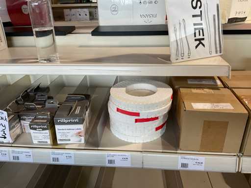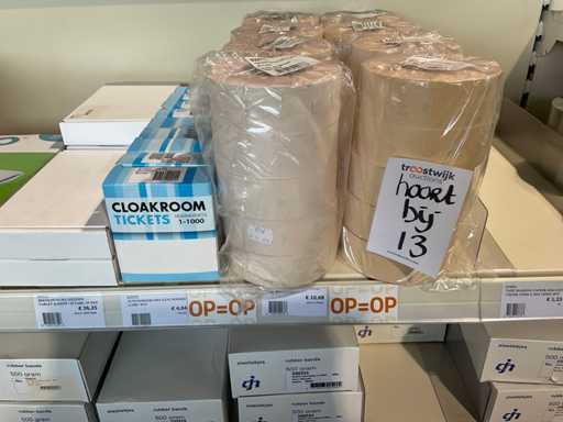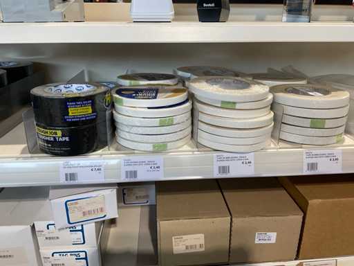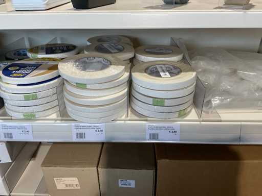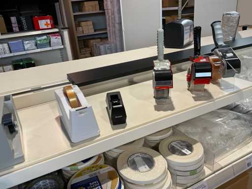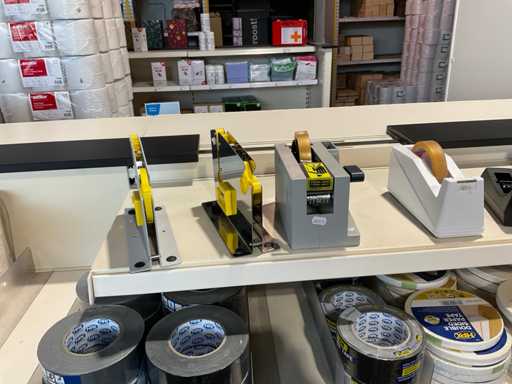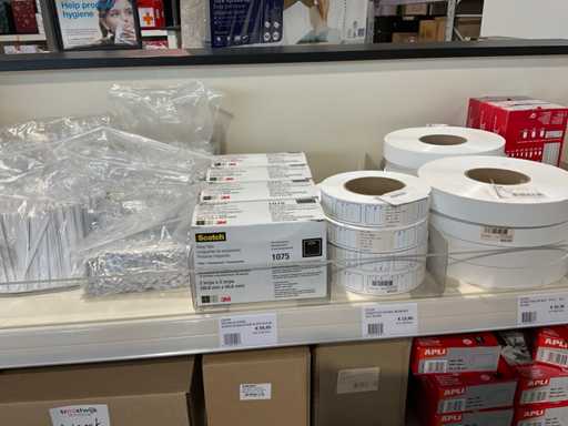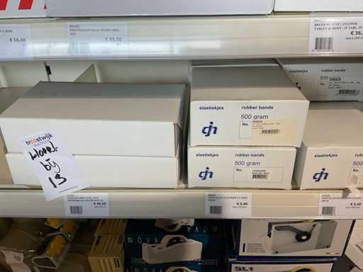 Klebeband, Beutelverschluss, Clips, Klebebandspender, Etiketten, Gummibänder, Wickelstreifen, Aufhängetiketten.
