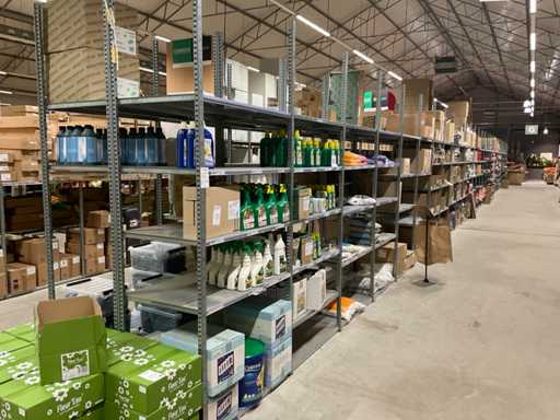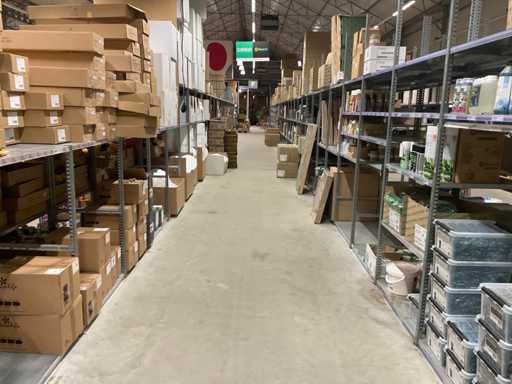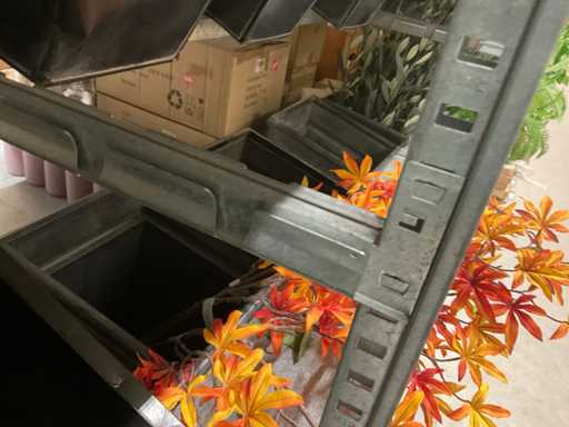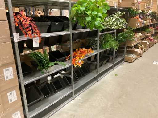 Es geht um Lagerregale mit unterschiedlichen Grundrissen: In 18 Abschnitten gibt es Eimer für künstliche Blumen, diese sind enthalten, ein Teil von 2x 5 Abschnitten ist ca. 128 cm groß. Inhalt/lose Stücke sind nicht enthalten.